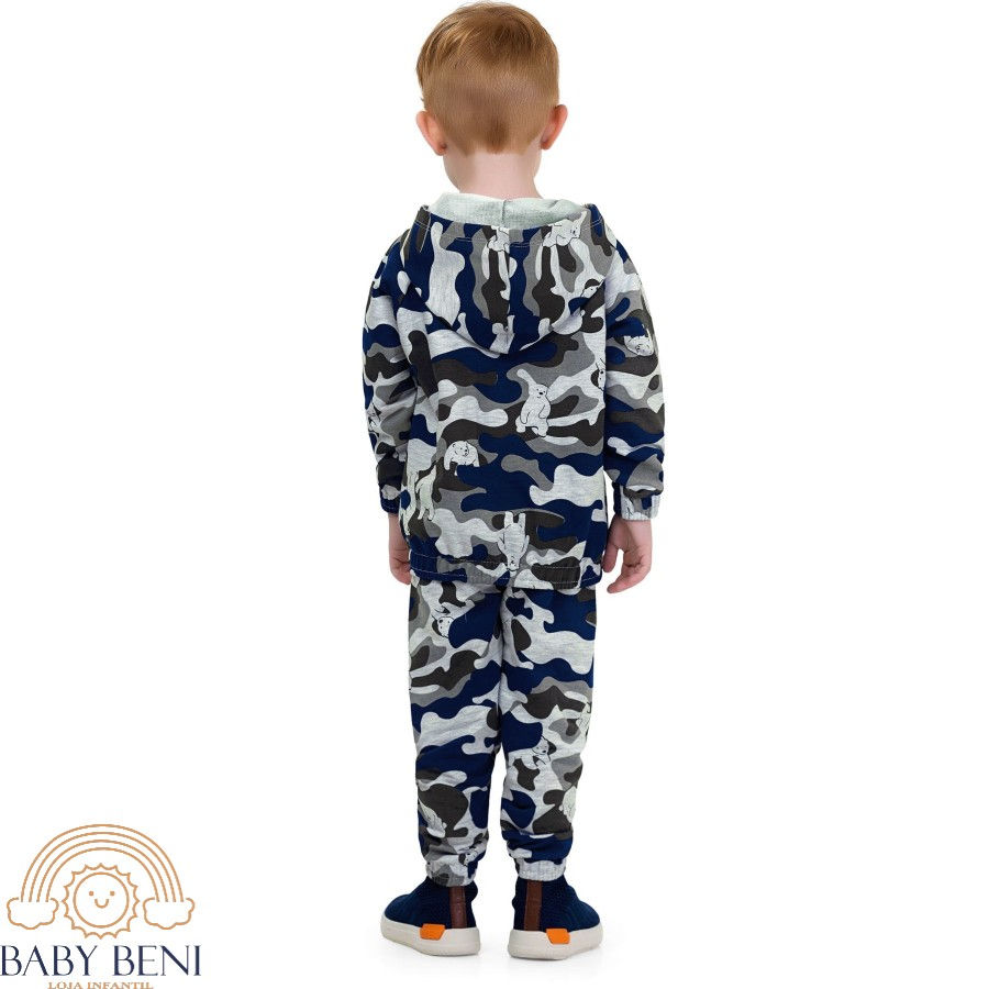 Conjunto Jaqueta com capuz e calça moletom camuflado Urso - 1223