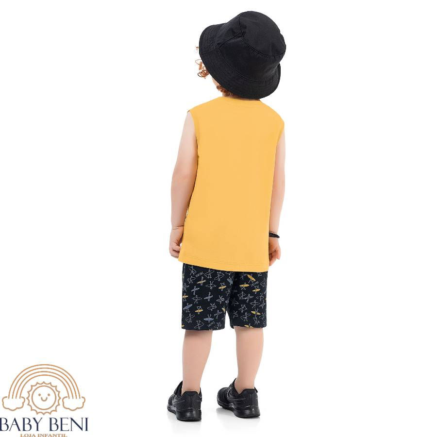 Conjunto Regata Amerela e Shorts Moletinho preto Surf - 2222