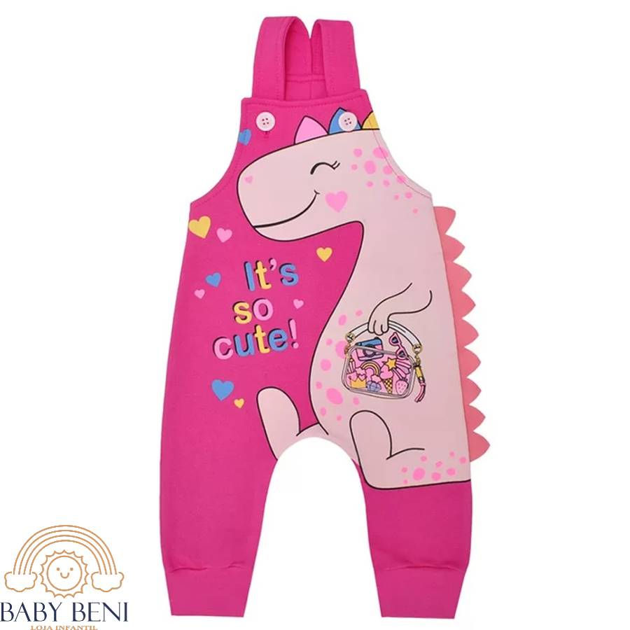 Conjunto Jardineira Pink e Body manga longa rosa Dina - 6475